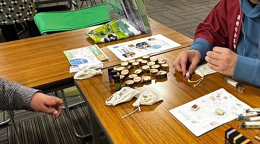 木材チップとアロマオイルを使って、 森町の香り袋を作成するワークショップです。